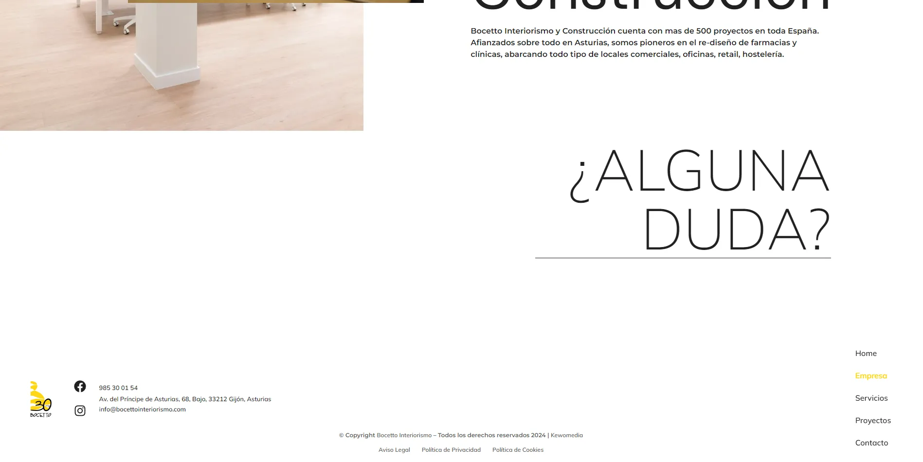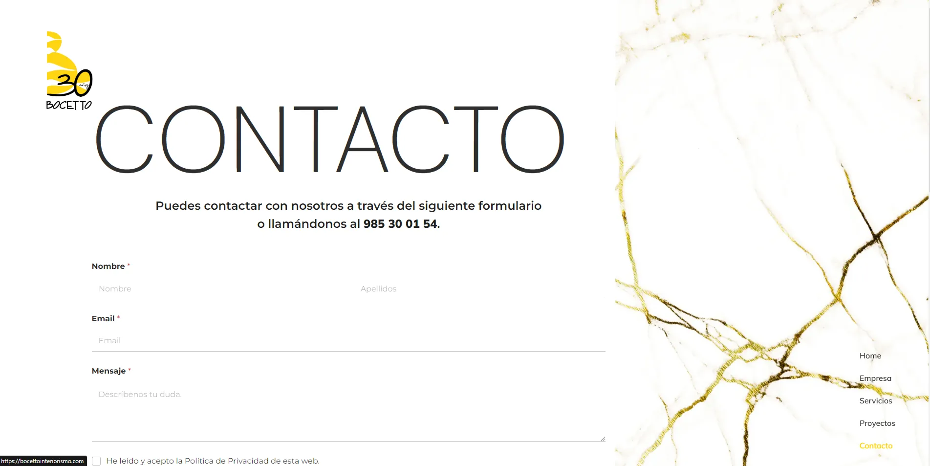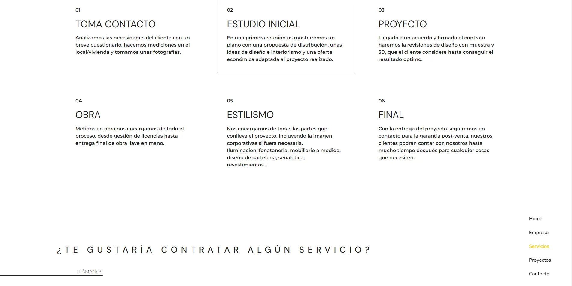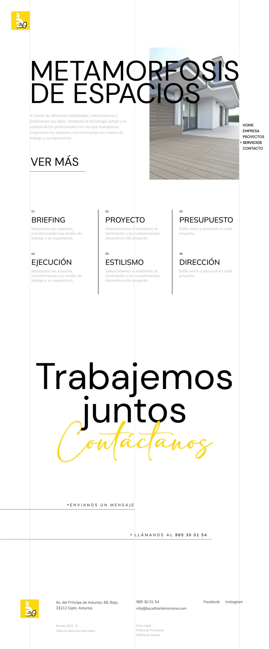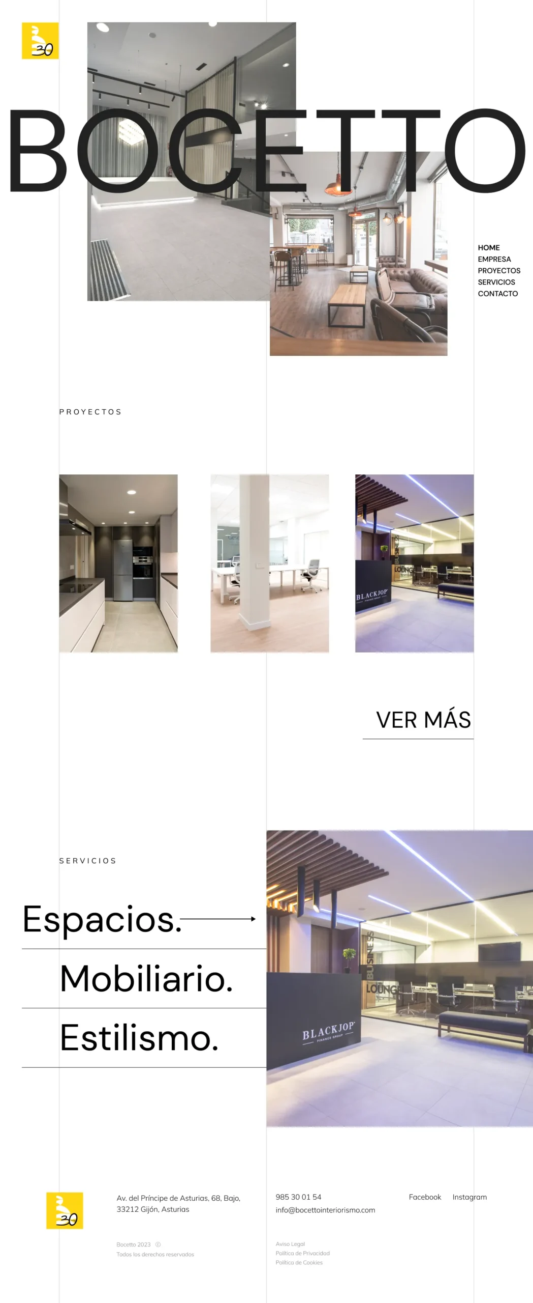 Nos enfocamos en destacar los aspectos característicos de Bocetto Interiorismo a través de detalles sutiles y equilibrados que realzan la página web, manteniendo coherencia con la temática general.